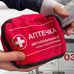 - Аптечка первой помощи автомобильная, соответствующая ГОСТу 2021 года;